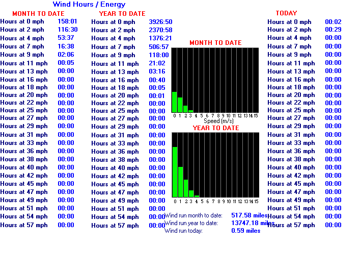Average windspeed (ten minute)2.3 mph Wind Direction (ten minute)S (177°)