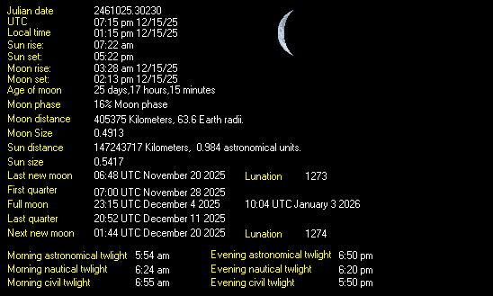 LAST READING AT TIME: 2:25 PM DATE: December 15 2025, time of next update: 2:30 pm